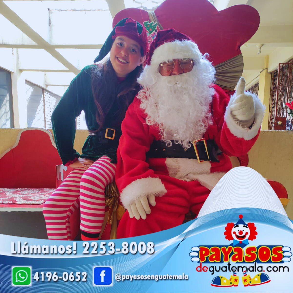 Contrata a nuestro Santa Claus profesional, acompañado de su divertido duende navideño, para tu convivio empresarial o familiar.